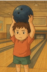 この画像のように、身体の上に頭(ボウリング球)が真っすぐ乗っていれば負担は少ないのですが、