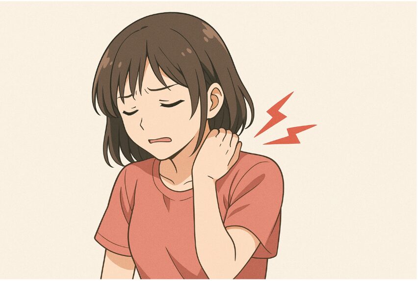 とくに肩甲骨の内側や首の根元、鎖骨のあたりの筋肉がこわばっている人が多いです。
