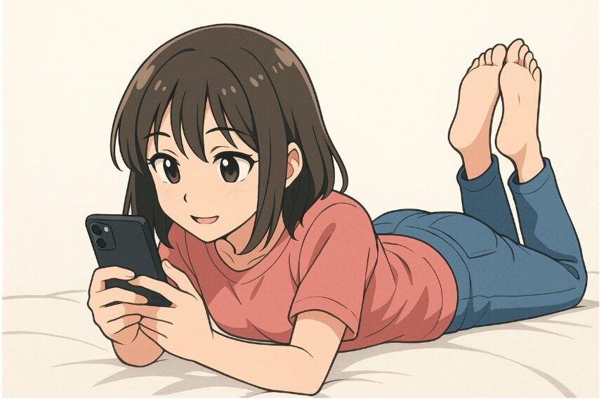 「うつ伏せになって携帯をいじるのをやめましょう!」